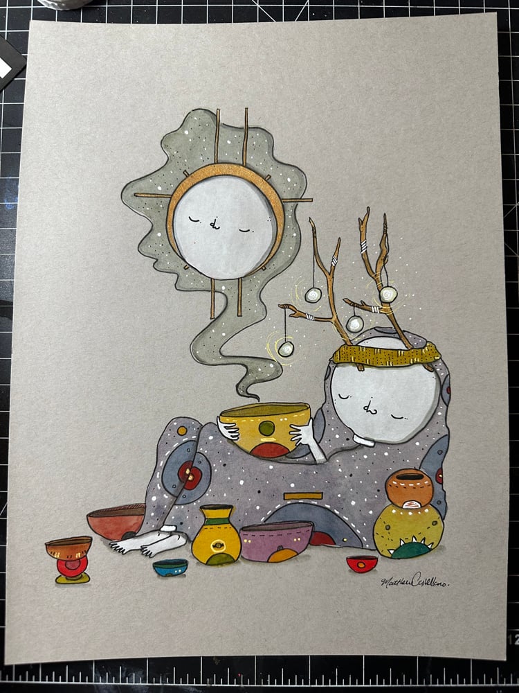 8“ x 10“ watercolor and ink on heavyweight toned gray mixed Media paper